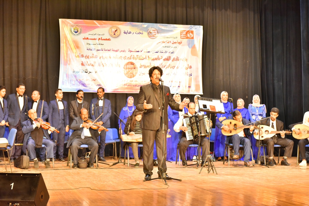 وفى ختام الاحتفالية تم تقديم بعض الفقرات الغنائية والاغانى الوطنية لفرقة الموسيقى العربية بقصر ثقافة اسيوط بقيادة المايسترو حسام حسنى .