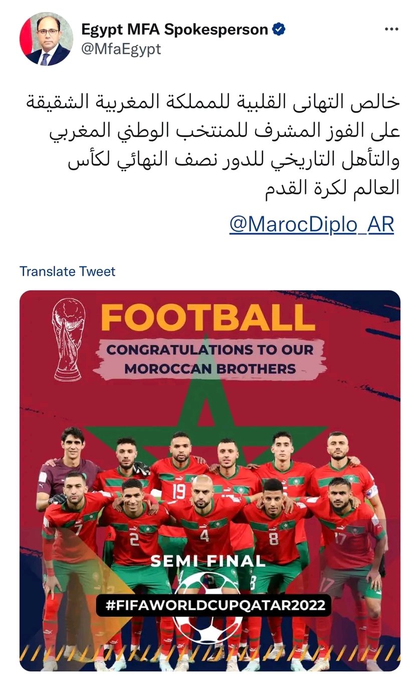 مصر تهنئ المغرب بعد التأهل للدور نصف النهائي لكأس العالم