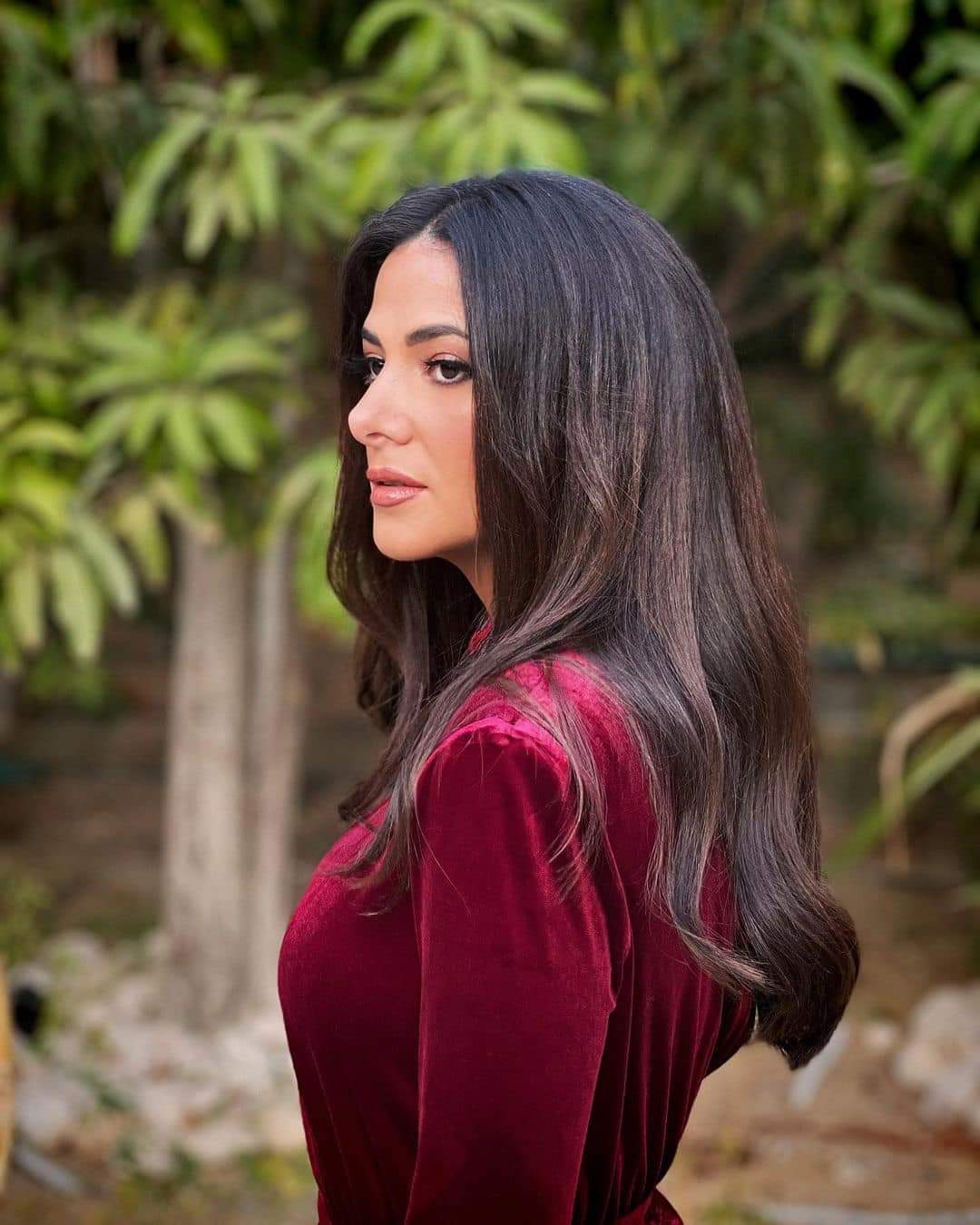 نشرت الفنانة دنيا سمير غانم صورة جديدة لها من خلال حسابها الشخصي بموقع التواصل الاجتماعي للصور والفيديوهات انستجرام، حيث ظهرت في الصورة مرتدية فستانا قطيفة باللون فوشيا ، وشعرها منسدلا على الاكتاف .