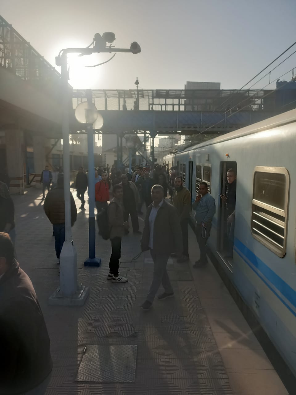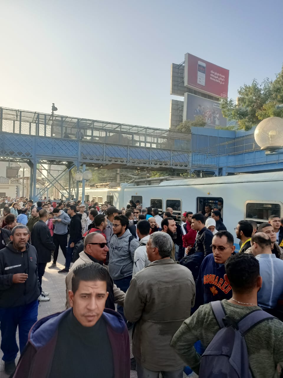 توقفت حركة قطارات مترو الأنفاق في الخط الأول "حلوان المرج"، مما أدى إلى تكدس الركاب داخل محطات المترو.