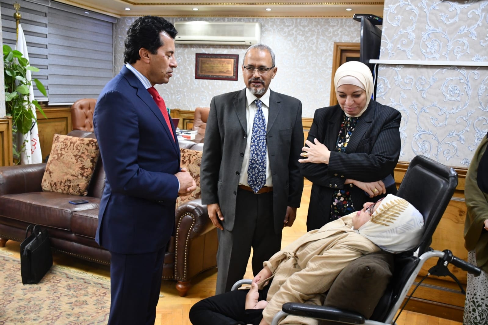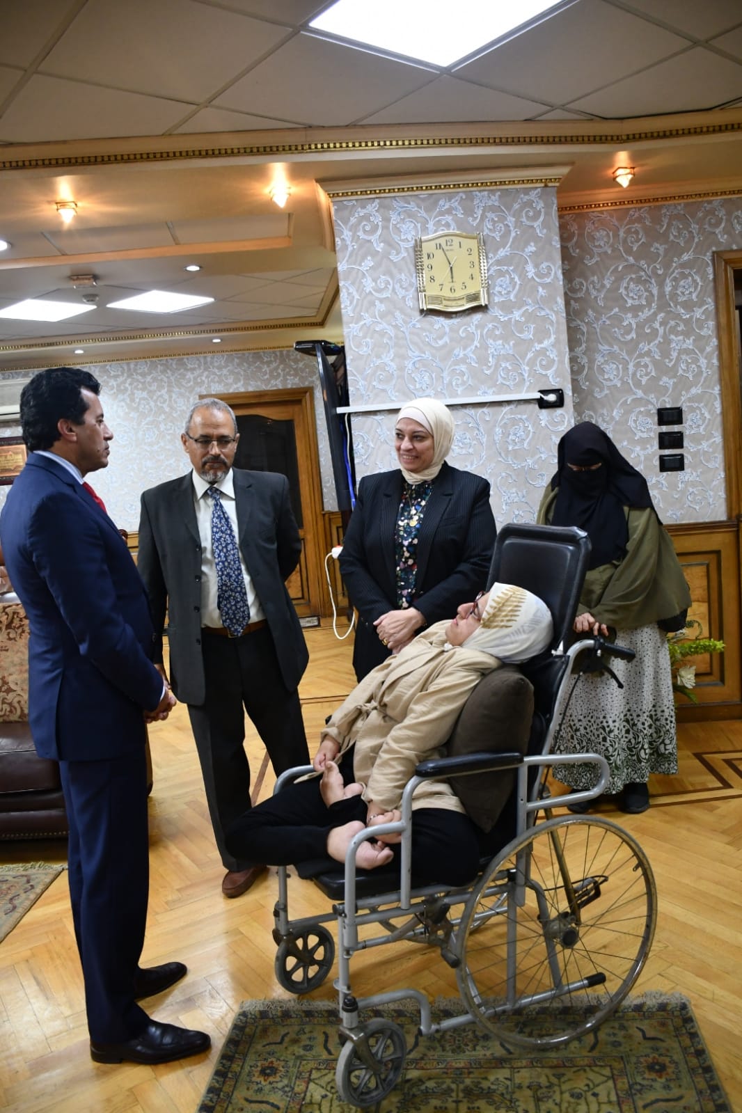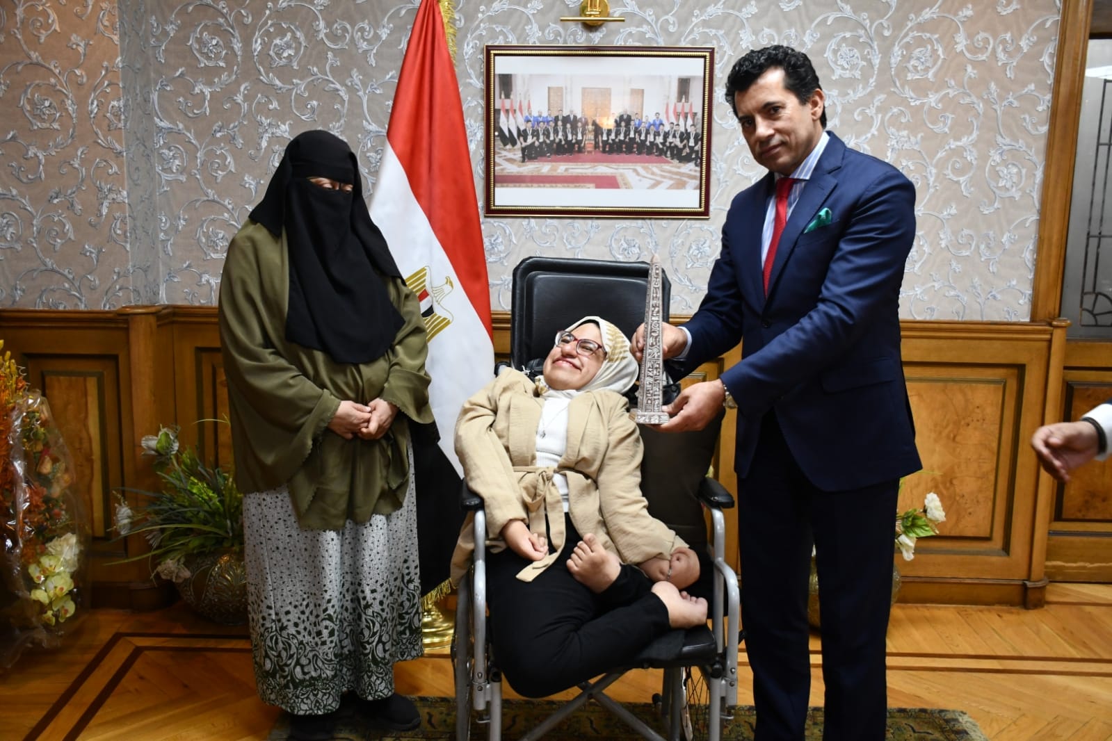 وزير الشباب والرياضة يكرم طالبة ذوي الهمم والقدرات لتفوقها العلمي والرياضي