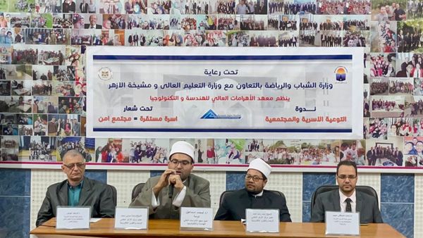 نظمت وزارة الشباب والرياضة الإدارة المركزية لتنمية الشباب الادارة العامة للبرامج و الأنشطة الجامعية، بالتعاون مع مركز الأزهر العالمي للفتوى الإلكترونية بمشيخة الأزهر الشريف ووزارة التعليم العالي الإدارة العامة لرعايه الطلاب، لقاء طلابي بمعهد الأهرامات العالي للهندسة 6 أكتوبر ، بعنوان"أسس الحياة السعيدة"، وذلك في إطار حرص الوزارة على الاهتمام بالقضايا المعاصرة وتوجيه الشباب نحو حياة أفضل ونبذ الافكار الهدامة.