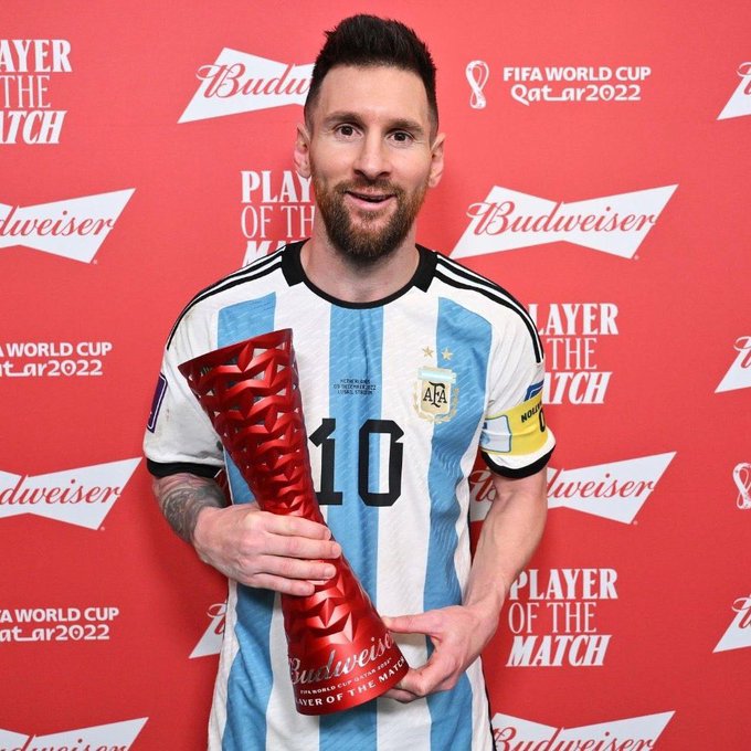 حصد ليونيل ميسي قائد منتخب الأرجنتين، جائزة أفضل لاعب في مباراة الأرجنتين ضد كرواتيا، التي انتهت بثلاثة أهداف دون مقابل، في المواجهة التي أقيمت بينهما مساء اليوم، الثلاثاء، على استاد "لوسيل"، ضمن منافسات الدور نصف النهائي من بطولة كأس العالم 2022.