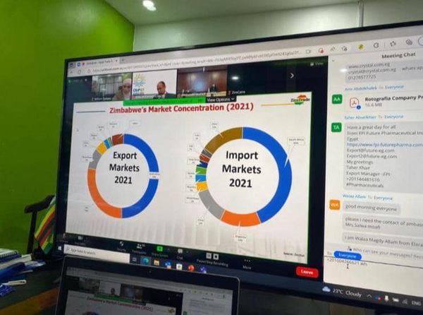 نظمت سفارة جمهورية مصر العربية لدي جمهورية زيمبابوي يوم 13 ديسمبر الجاري اجتماعًا افتراضيًا بالتعاون مع هيئة التجارة الزيمبابويةZimTrade ، شارك فيه من الجانب المصري السفير محمد البدري مساعد وزير الخارجية للشئون الافريقية، والسفير أحمد بكر نائب مساعد وزير الخارجية، والوزير المفوض علي محمد باشا رئيس قطاع أفريقيا من جهاز التمثيل التجاري بوزارة التجارة والصناعة المصرية، والنائب شريف الجبلي رئيس لجنة الشئون الافريقية بمجلس النواب المصري ورئيس لجنة التعاون الإفريقي باتحاد الصناعات المصرية. ومن الجانب الزيمبابوي، شارك عدد من رؤساء وكبار المسئولين من وزارة الخارجية وهيئة التجارة وهيئة الاستثمار وهيئة الجمارك.