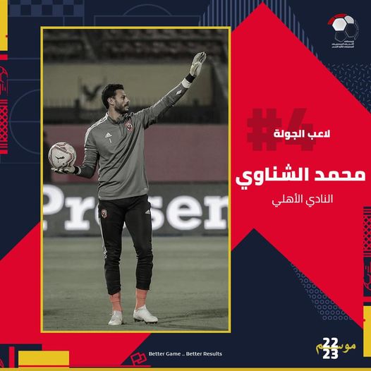 حصد محمد الشناوي حارس مرمى النادي الأهلي، جائزة أفضل لاعب في الجولة الرابعة من بطولة الدوري المصري الممتاز بناء على تصويت الجماهير.