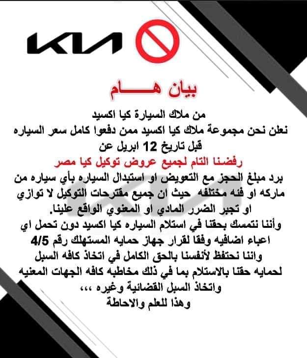 استغاث عملاء كيا مصر بجهاز حماية المستهلك ضد تعنت الشركة ورفضها تسليمهم سياراتهم على الرغم من دفع كامل مبلغ السيارة.