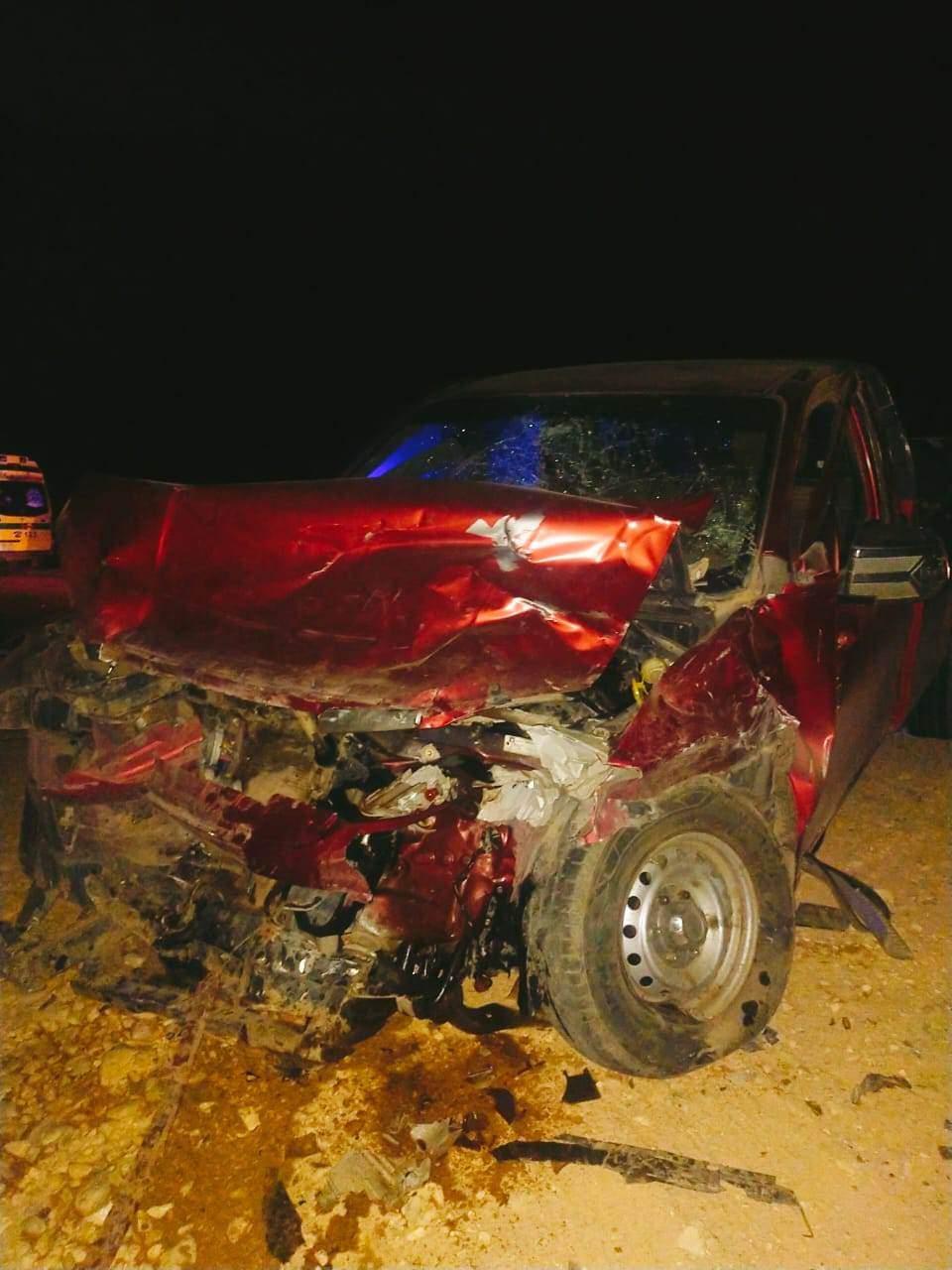 انتقلت قوات الأمن لمكان الحادث وتم الدفع بـ١٢ سيارة إسعاف، وتبين وقوع تصادم بين سيارة ميكروباص ونقل، مما نتج عنه مصرع شخص جثته مجهولة الهوية، وإصابة شاذلية الشاذلى عبدربه ٤٨ سنة اشتباه كسور، وشقيقتها نورا ٤٠ سنة، اشتباه كسور، وخالد عبدالمجيد ٤٠ سنة، كسر بالفخذ اليمنى، وأحمد عبدالحافظ ٢٥ سنة سحجات، وأنس محمد غريب ٨ شهور سحجات، وشقيقه آدم ٨ شهور سحجات، وجيهان أحمد ربيع، ٤٢ سنة، كسر بالقدم اليسرى، ورجب إبراهيم رجب ٦٠ سنة، كسر بالفخذ، ومحمد السيد محمد ٣٥ سنة كسر بالساق اليسرى، وجمال أبوزيد ٥٣ سنة كسر بالفك، وأسماء عبدالحافظ درويش ٢٢ سنة سحجات، ورجب سعيد غريب ٣٠ سنة كسر بالقدم اليمنى.