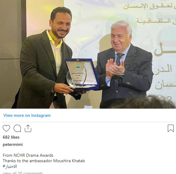 وكرم بيتر ميمي من قبل المجلس القومي لـ حقوق الانسان عن مسلسله الشهير الاختيار، وأعرب بيتر ميمي عن سعادته بهذا التكريم من خلال حسابه الرسمي بموقع تبادل الصور والفيديوهات "انستجرام".