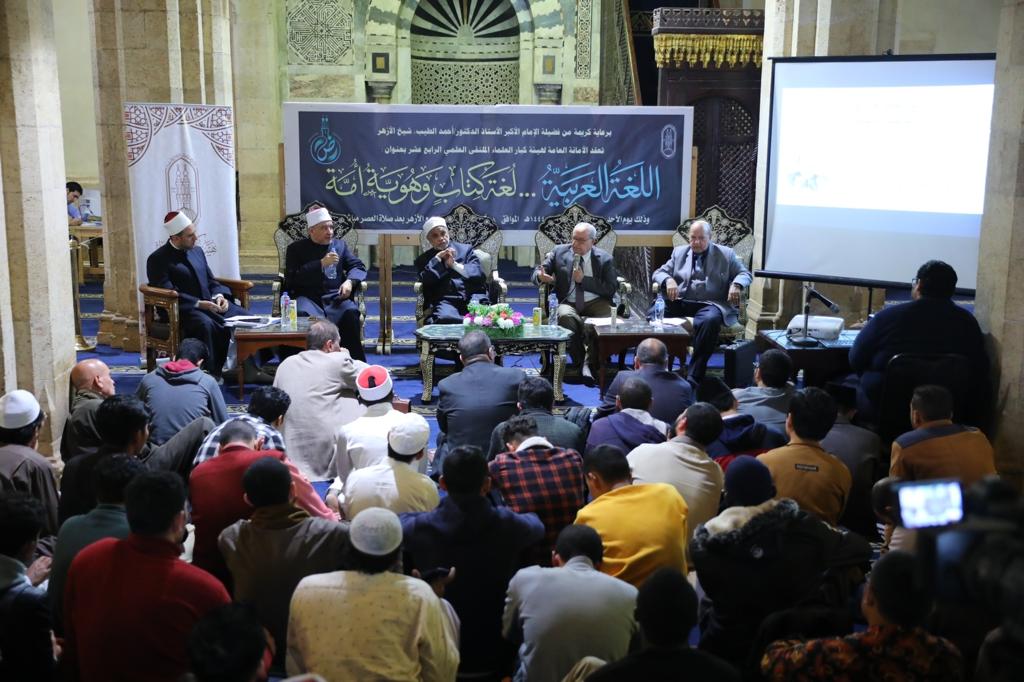 ونادى الأمين العام لهيئة كبار العلماء خلال الملتقى العلمي الرابع عشر لهيئة كبار العلماء في الجامع الأزهر اليوم، جموع الأمة العربية والإسلامية بتحمل أمانة الحفاظ على اللغة والاعتزاز بها ودراستها والترجمة إليها والترجمة منها للتواصل مع علوم الدنيا والآخرة عند الأمم، فقد أدرك سلفنا الصالح هذا الأمر فانطلقوا بعقولهم باحثين عن العلم بلغتهم العربية؛ بل إن الأعاجم منهم من دخلوا الإسلام فحفظوا القرآن وأتقنوا العربية وفكروا بها وألفوا بها وترجموا إليها فأضافوا إلى الحضارة حضارة وإلى الرقي رقيًّا، فكانت الأمة وكان مجدها وعزها إيذانًا بشهادة التاريخ بأنه لا عزة للأمم ولا خصوصية ولا قيمة ولا تفرد ولا تميز لها إلا باعتزازها بلغتها.