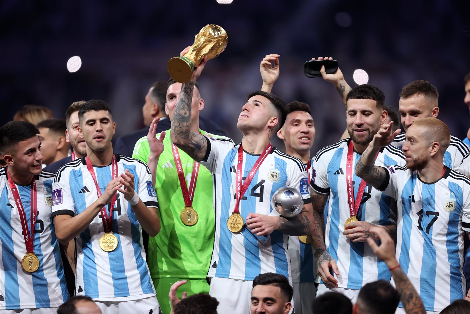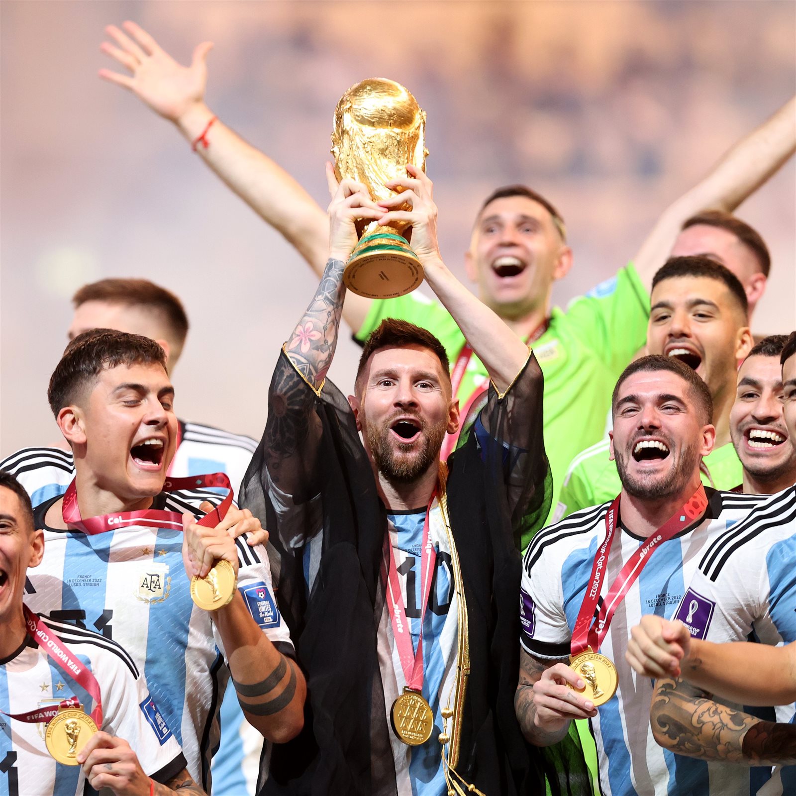 وارتدى ليونيل ميسي عباءة خاصة من أمير قطر الشيخ "تميم بن حمد"، واتجه إلى جياني إنفانتينو رئيس "الفيفا" ليتسلم كأس العالم ويرفعه مع لاعبي منتخب الأرجنتين.