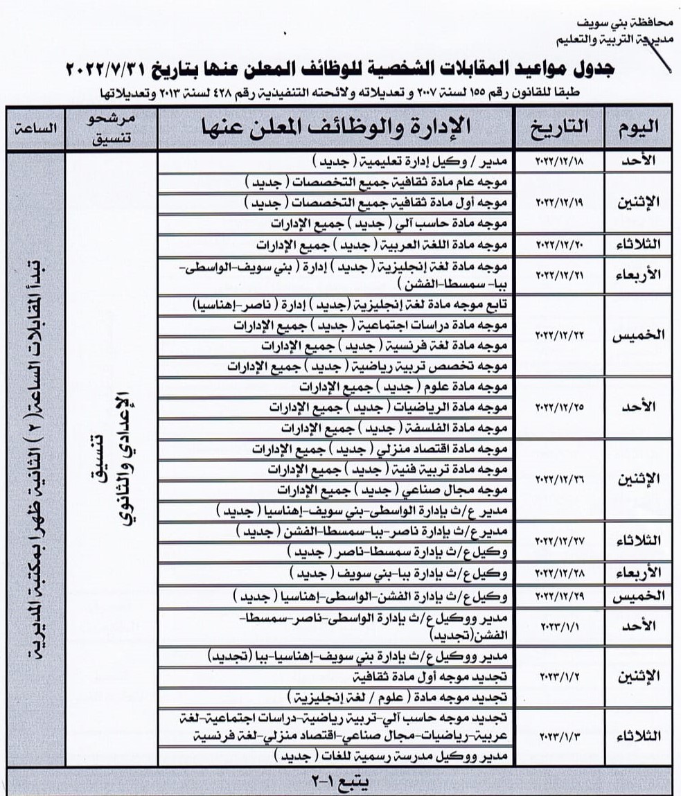 تابع الدكتورمحمد هاني غنيم محافظ بني سويف مع مسؤولي التعليم،الإجراءات والخطوات التي تقوم بها المديرية،لعقد الاختبارات والمقابلات الشخصية للمتقدمين للوظائف الإشرافية والتي تشمل (مًدراء ووكلاء إدارات التعليم ، ومُوجّهي عُموم وأُوُلّ ، ومُدراء ووكلاء مدارس)لتقييم واختيار أفضل العناصر المؤهلة ذوي المهارات والقدرات والمعارف اللازمة لمسايرة التطور الذي تشهده المنظومة التعليمية وبما يتماشى مع رؤية مصر للتنمية المستدامة 2030