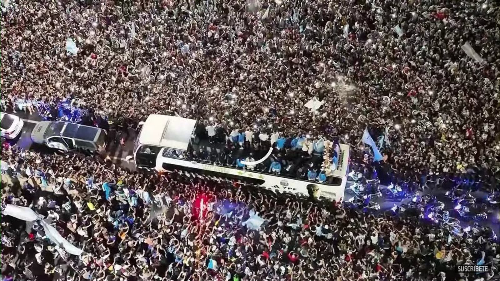 وفور وصول منتخب الأرجنتين إلى المطار استقل ميسي ورفاقه حافلة مكشوفة مخصصة للاحتفال مع الجماهير، وبدأو بالفعل في التحرك بشوارع العاصمة بوينس آيرس في طريقهم لمجمع التدريب بالاتحاد الأرجنتيني لكرة القدم.