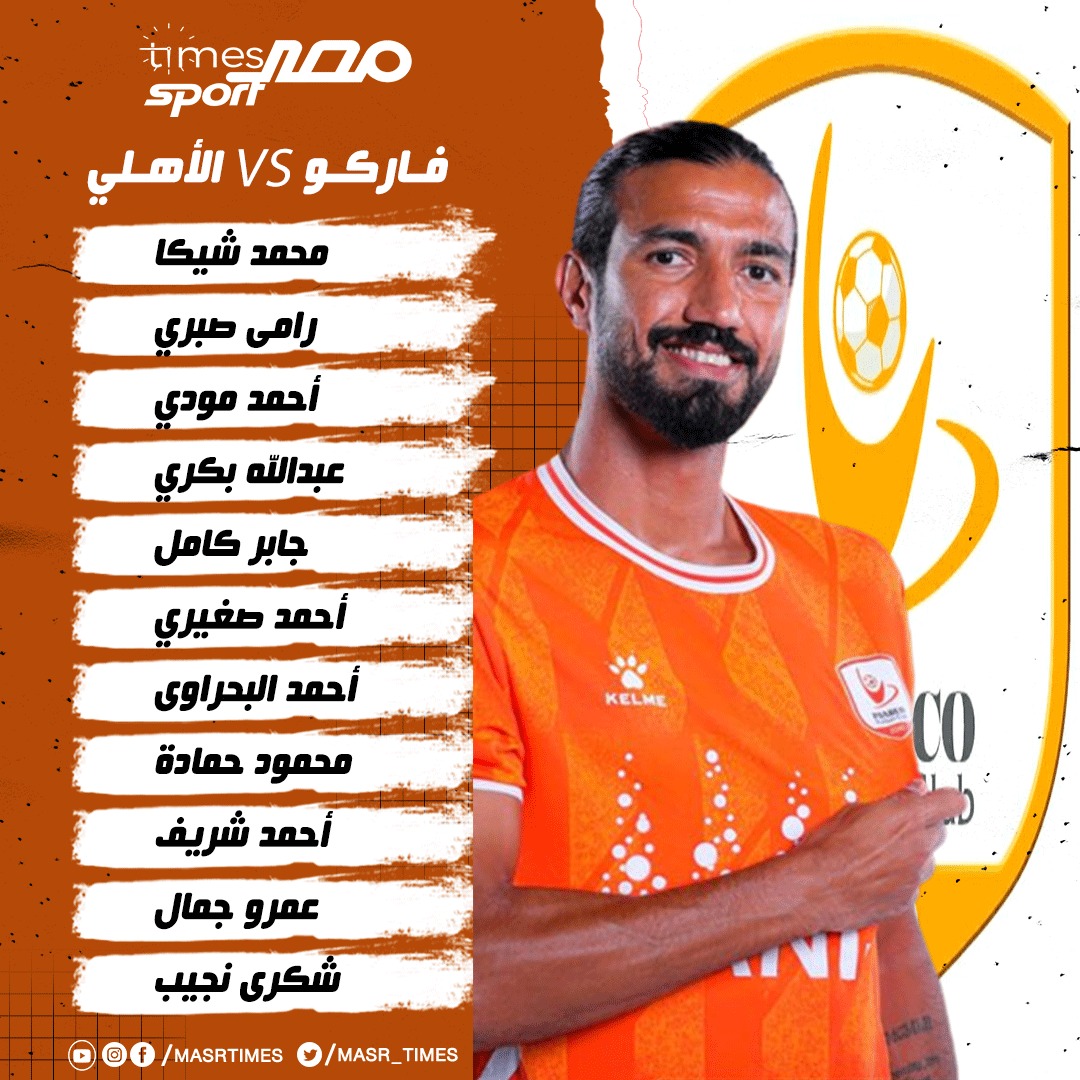 ويدخل فاركو مباراة الأهلي بتشكيلة مكونة من: حراسة المرمى: محمد سعيد شيكا، خط الدفاع : جابر كامل، رامي صبري، أحمد مودي، عبدالله بكري، أحمد صغيري، خط الوسط :محمود حمادة، أحمد البحراوي، أحمد شريف، خط الهجوم: عمرو جمال، شكري نجيب.
