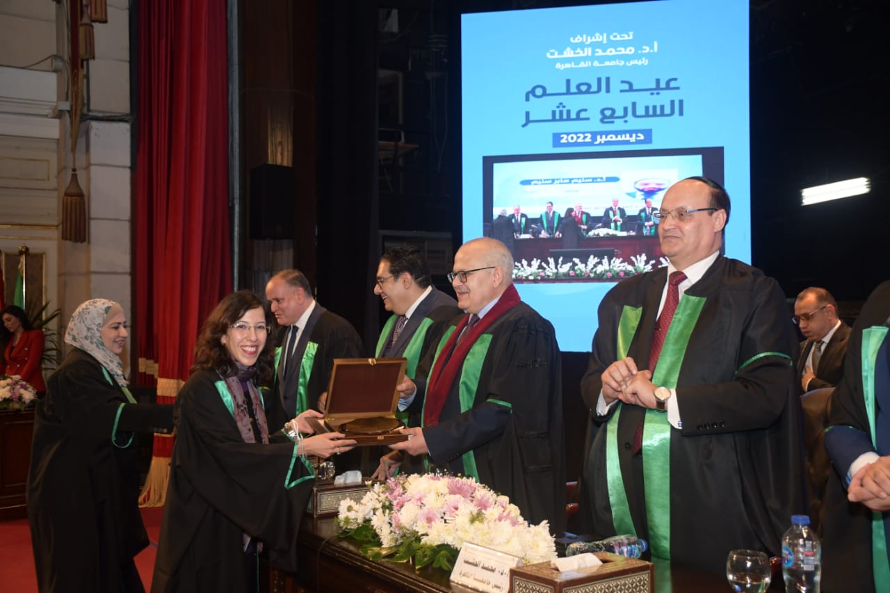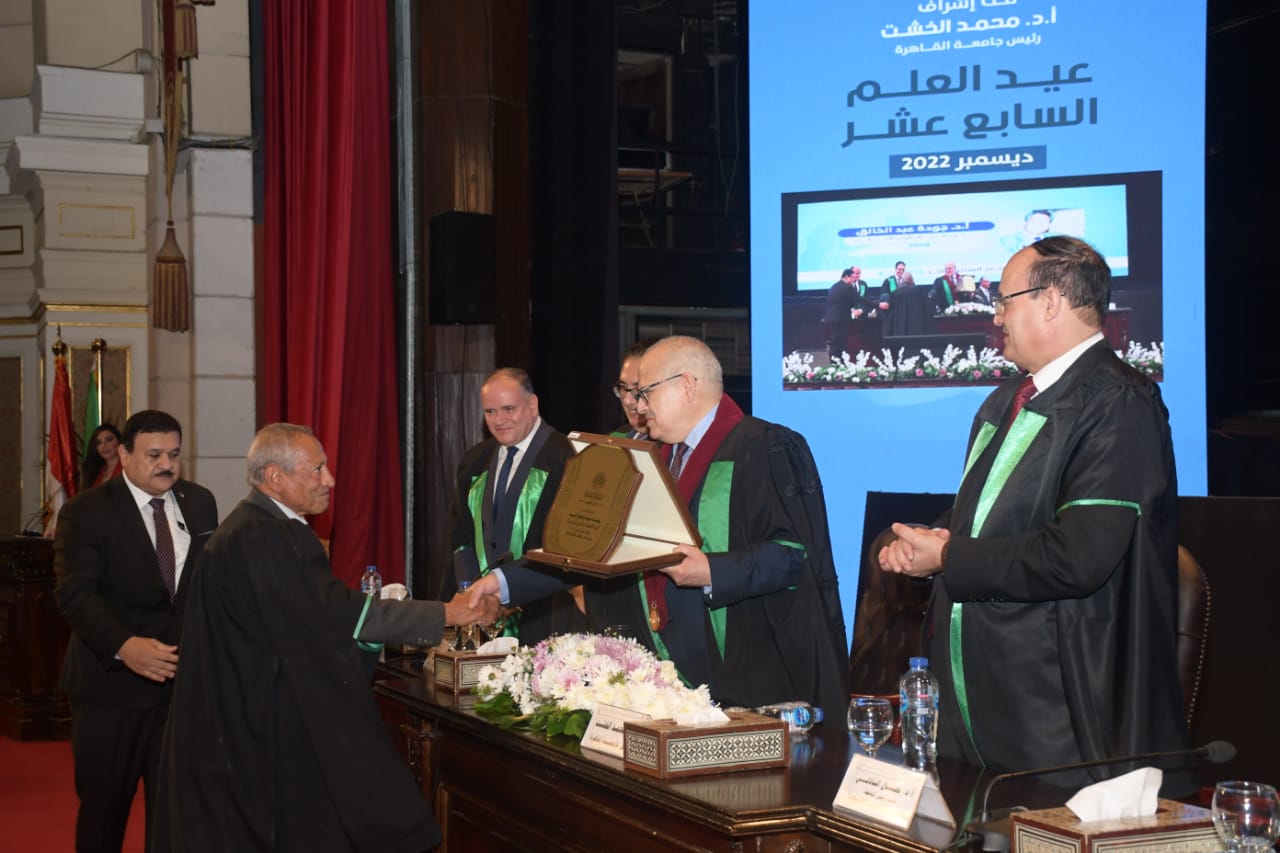 كرمت جامعة القاهرة برئاسة الدكتور محمد عثمان الخشت، 140 عالمًا ومفكرًا وباحثها من أبنائها الحاصلين على جوائز الدولة بأنواعها وجوائز الجامعة لعامي 2019 و 2020 و 2021 فى عيد العلم السابع عشر، تحت رعاية الدكتور محمد أيمن عاشور وزير التعليم العالي والبحث العلمي، وبحضور عدد كبير من الوزراء والمحافظين وكبار الشخصيات العامة ورجال الدولة، ونواب رئيس الجامعة وعمداء الكليات، وأعضاء هيئة التدريس والطلاب.