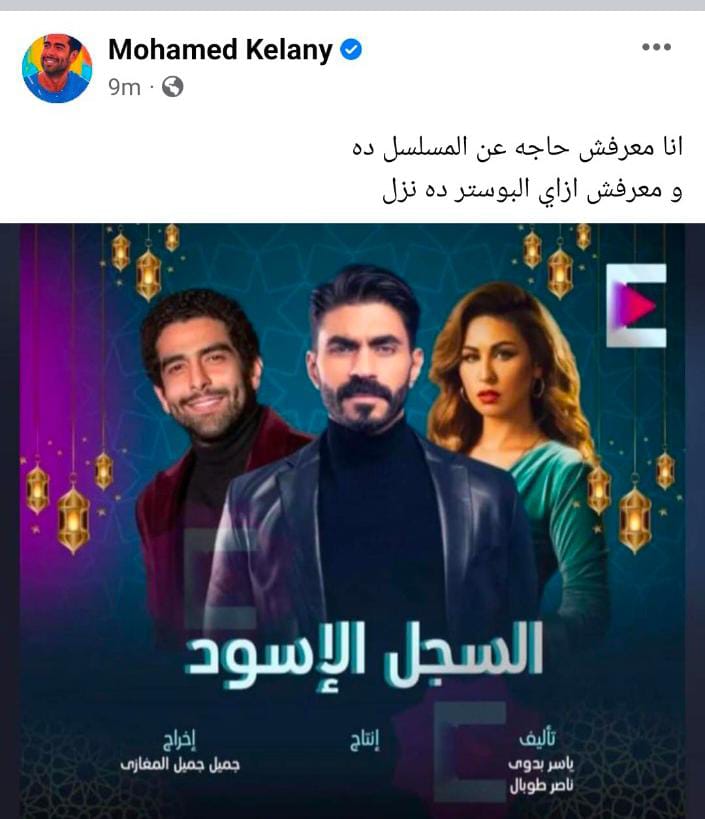 تفاجأ الفنان محمد كيلاني بتصدره أفيش مسلسل السجل الأسود بجانب كل من خالد سليم ومي سليم، بعد تداوله على صفحات السوشيال ميديا.