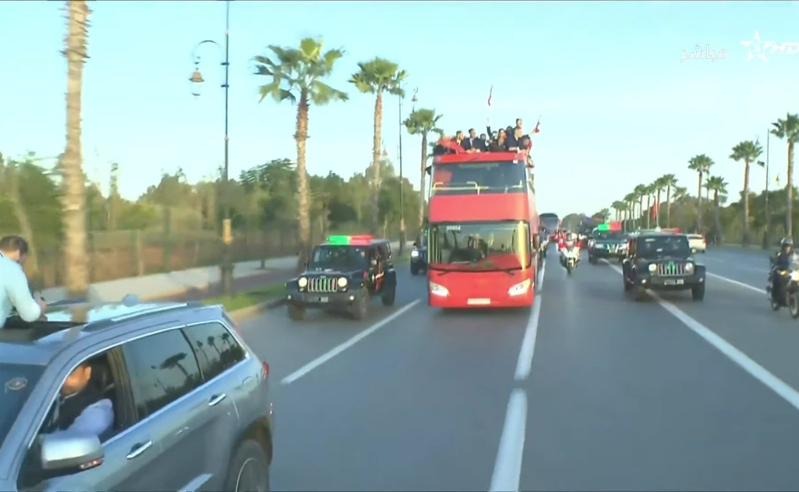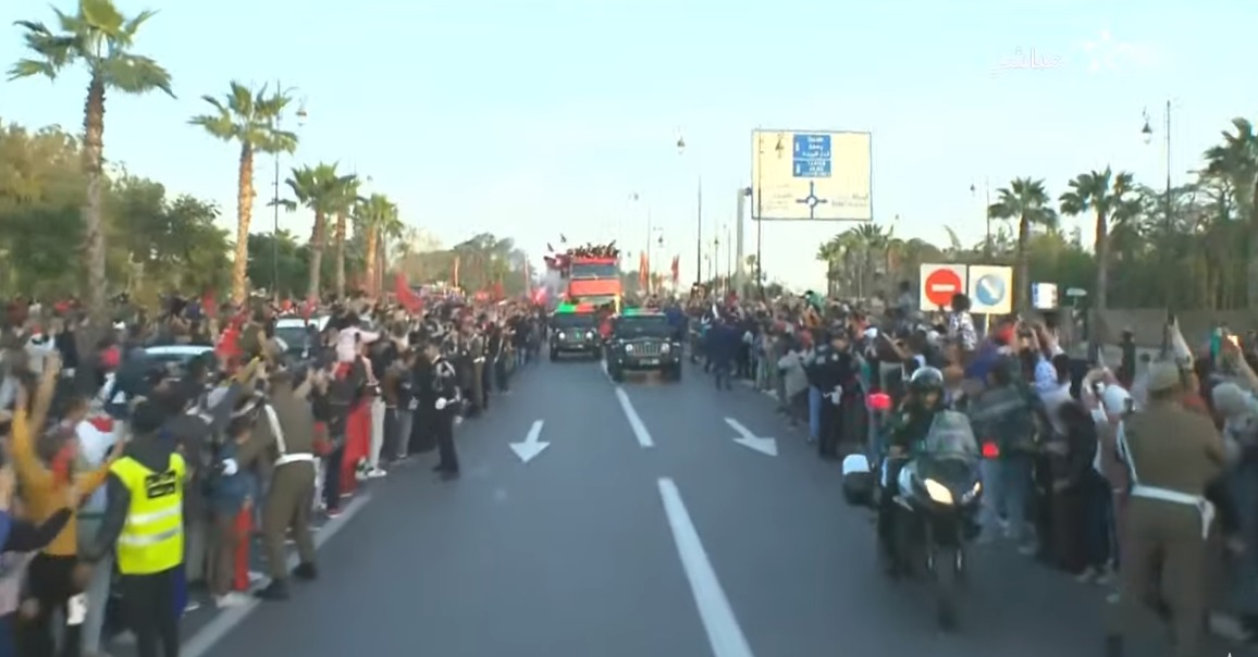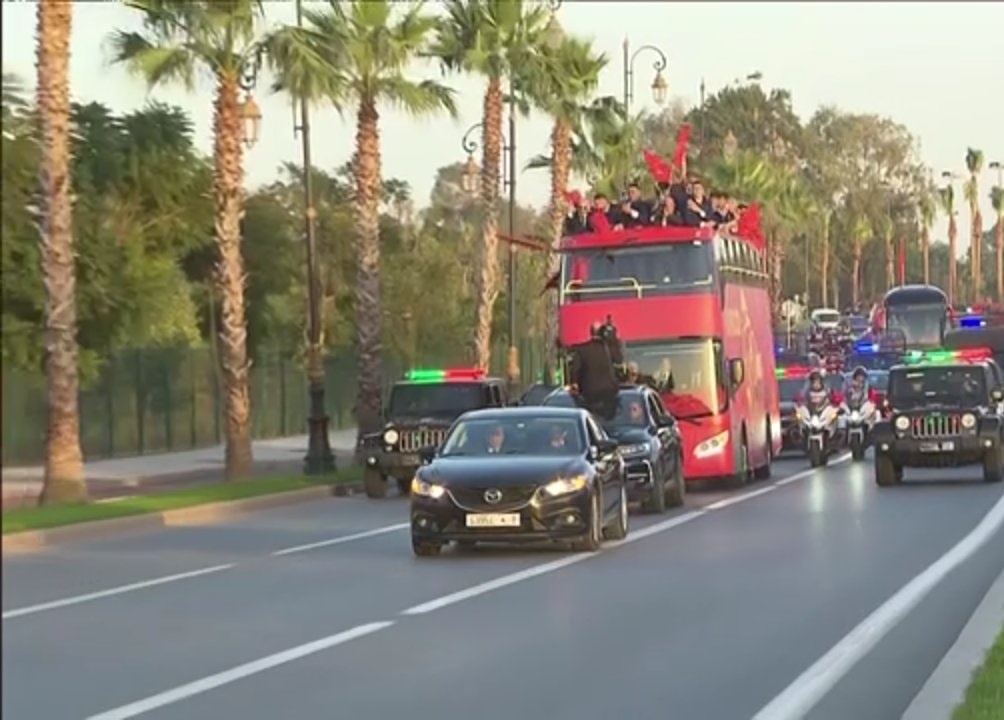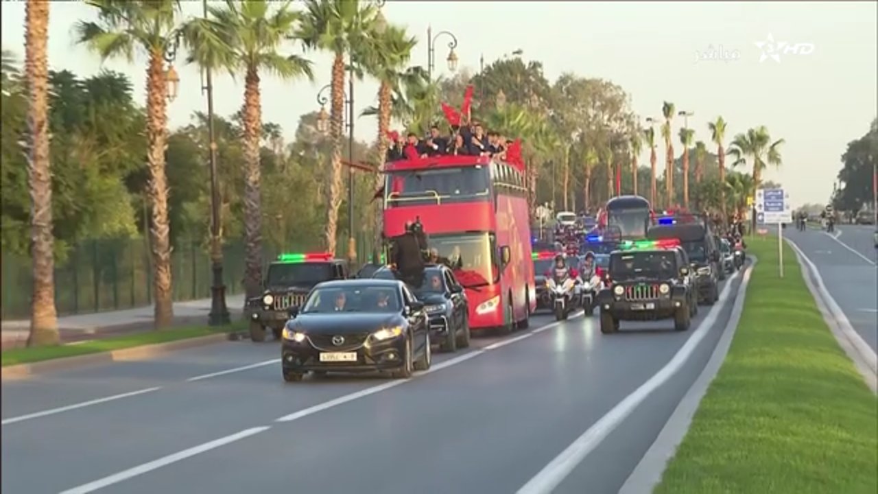 ووصلت حافلة منتخب المغرب الى المقر الملكي بعدما تواجد الملايين من المغاربة حول الشوارع التي مرت منها.