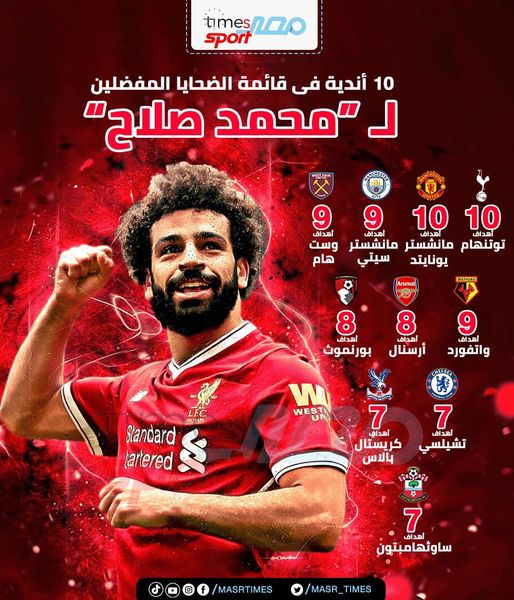 10 أندية فى قائمة الضحايا المفضلين لـ محمد صلاح.. توتنهام واليونايتد في الصدارة