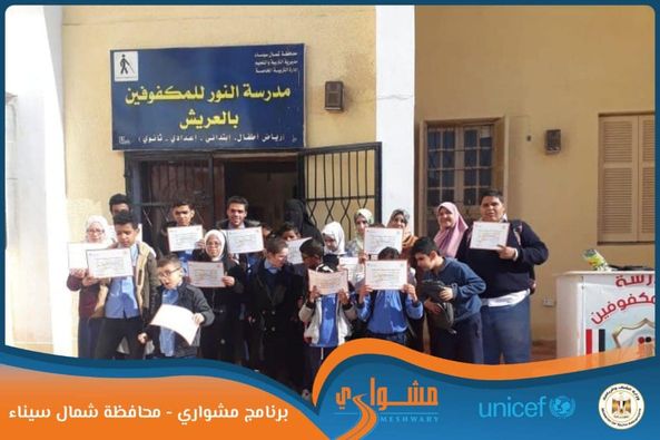 نفذت وزارة الشباب والرياضة من خلال الإدارة المركزية لتمكين الشباب الإدارة العامة لريادة الأعمال والمشروعات الناشئة، بالتعاون مع منظمة "اليونيسف" برنامج "مشواري"، في مدرسة الأمل للصم والبكم، ومدرسة النور للمكفوفين بمحافظة شمال سيناء، في إطار توجيهات الدكتور أشرف صبحي وزير الشباب والرياضة بتكثيف الانشطة والفعاليات في كافة المحافظات وخاصةً المحافظات الحدودية.