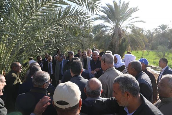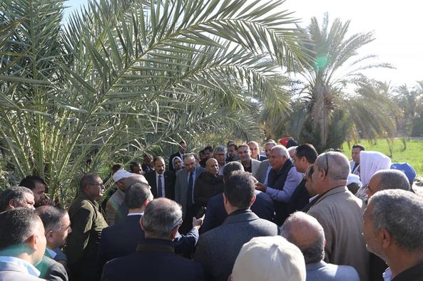 تفقد اللواء محمد الزملوط محافظ الوادي الجديد والنائب هشام صلاح رئيس لجنة الزراعة والري بمجلس النواب و وفد اللجنة المرافق، إحدى تجارب مكافحة سوسة النخيل الحمراء بزراعات قرى الشركة شمال مدينة الخارجة، يرافقهم أعضاء مجلس النواب عن المحافظة والقيادات التنفيذية المعنية.