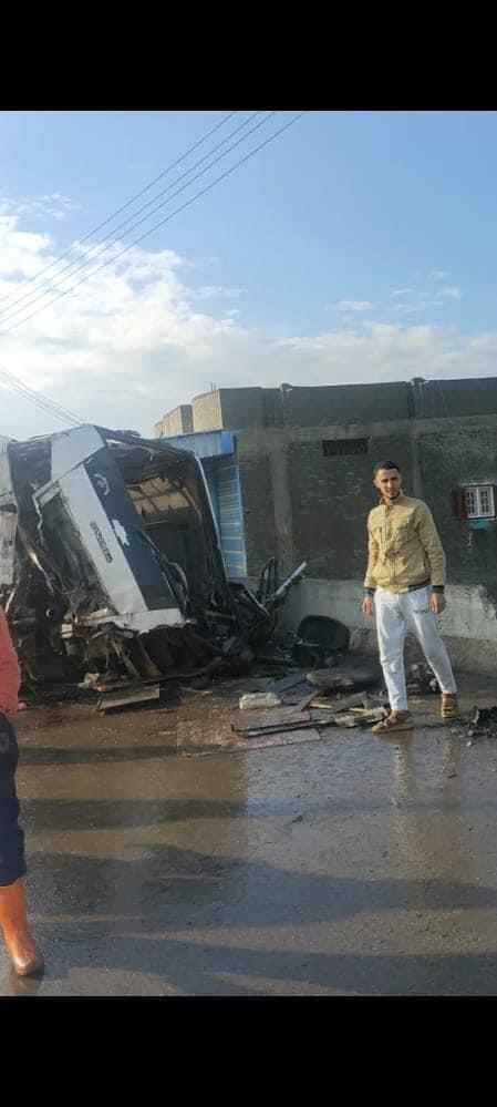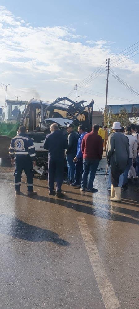 إصابة 17 عاملاً في حادث انقلاب ميني باص على طريق جمصة المنصورة (صور)