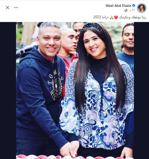 ونشر الفنان وائل عبد العزيز صورة لشقيقته النجمة ياسمين عبد العزيز مع فريق عمل مسلسل "ضرب نار" خلال تقطيع التورتة، وعلق قائلا "ربنا يوفقك ويكرمك"