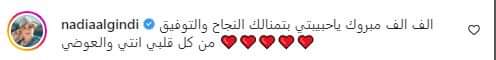 وكتبت نادية الجندى، لياسمين عبد العزيز بعد نشر صورتها من كواليس التصوير عبر حسابها على موقع "إنستجرام" قائلة: "ألف مبروك ياحبيبتي بتمنا لك النجاح والتوفيق من كل قلبي انتي والعوضى".