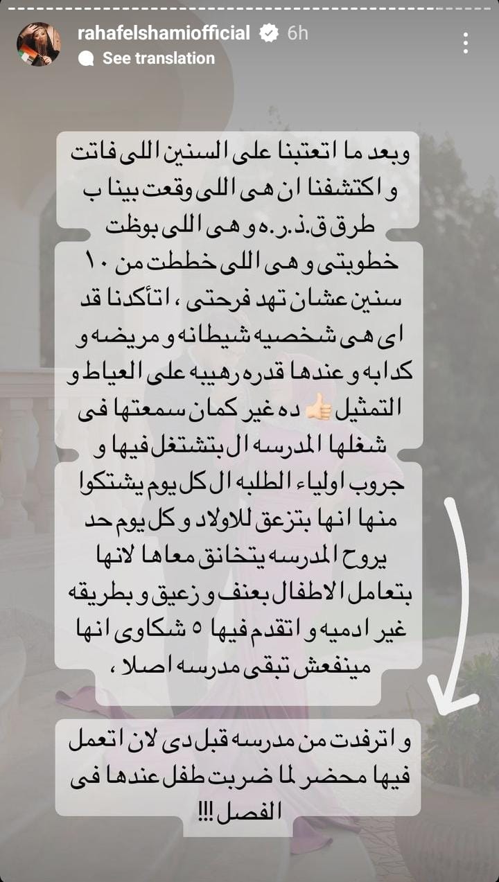 وأضافت البلوجر رهف أن الزوجة أخذت مكانتها فى كل شيء حتى شقتها واسم طفلها، وأنها هي التي كانت تستحق أن تعيش معه منذ البداية لولا تدخل السيدة لاختلاق خلافات بينهما لكي يتركها، معلقة: كذابة ومنافقة بس قدام الناس بتصلي وسبحتها في إيدها.