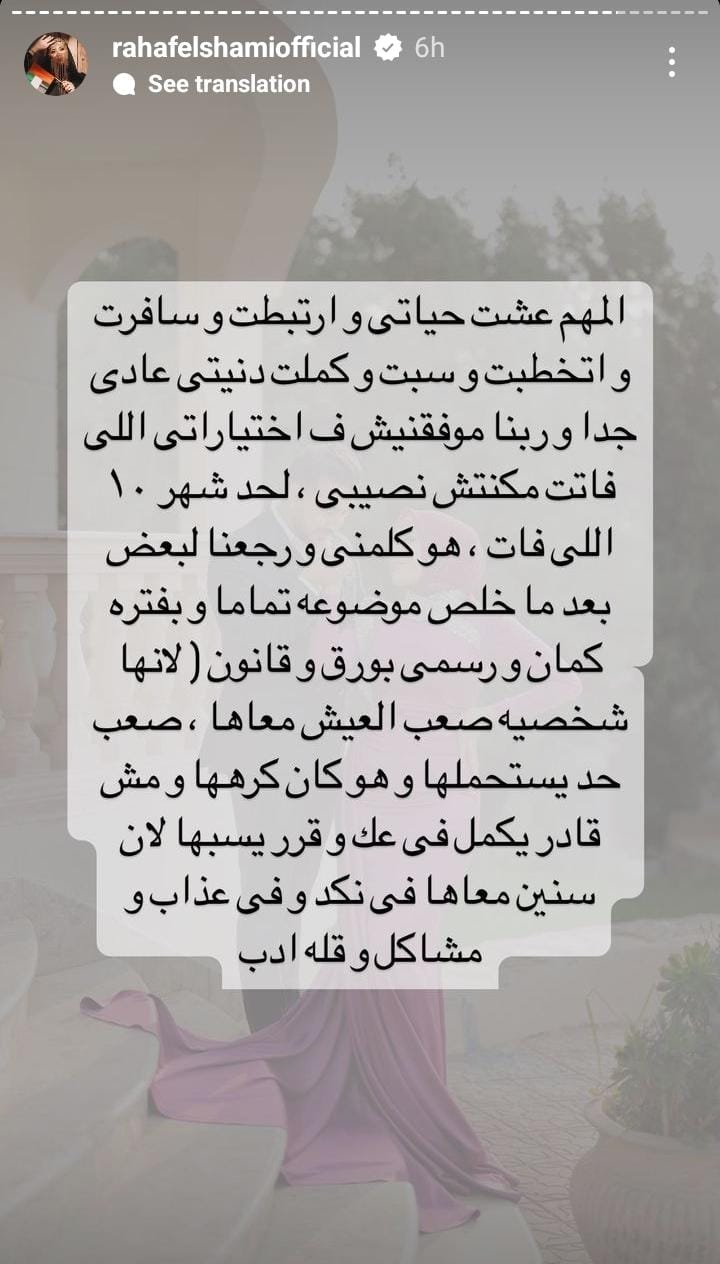 وأضافت البلوجر رهف الشامى فى ستورى على صفحتها الشخصية عبر إنستجرام: بعدما تركت خطيبي منذ أكثر من 10 سنوات، ظلت السيدة تحاول معه حتى تزوجها، وذهبت بنفسي إلى حفل زفافهما لكي أكسر بداخلي إحساسي تجاهه بالحب قائلة: أنا فى الصورة اللي انتشرت كنت بعيط وأنا شايفة حبيبي بيتزوج سيدة أخرى.