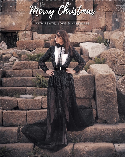 شاركت الفنانة إليسا جمهورها بصور من جلسة تصوير جديدة لها احتفالاً بالكريسماس، وعلى عكس أغلب النجمات اللاتي يفضلن الظهور بفساتين حمراء في احتفالات الكريسماس، اختارت إليسا فستانا أنيقا يدمج اللونين الاسود والأبيض.
