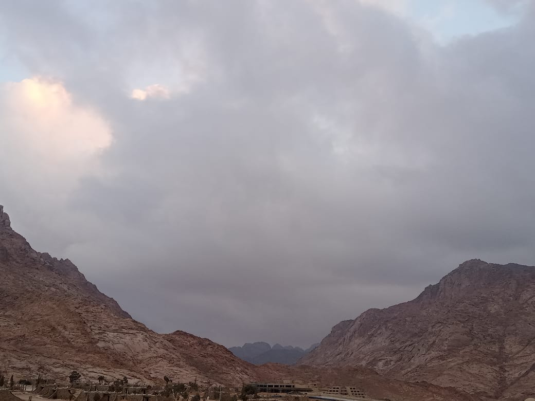 شهدت مدينة سانت كاترين الآن سحب وغيوم وأمطار خفيفة على التجلي الأعظم وتنبؤات وصقيع آخر الليل على جبال سانت كاترين .
