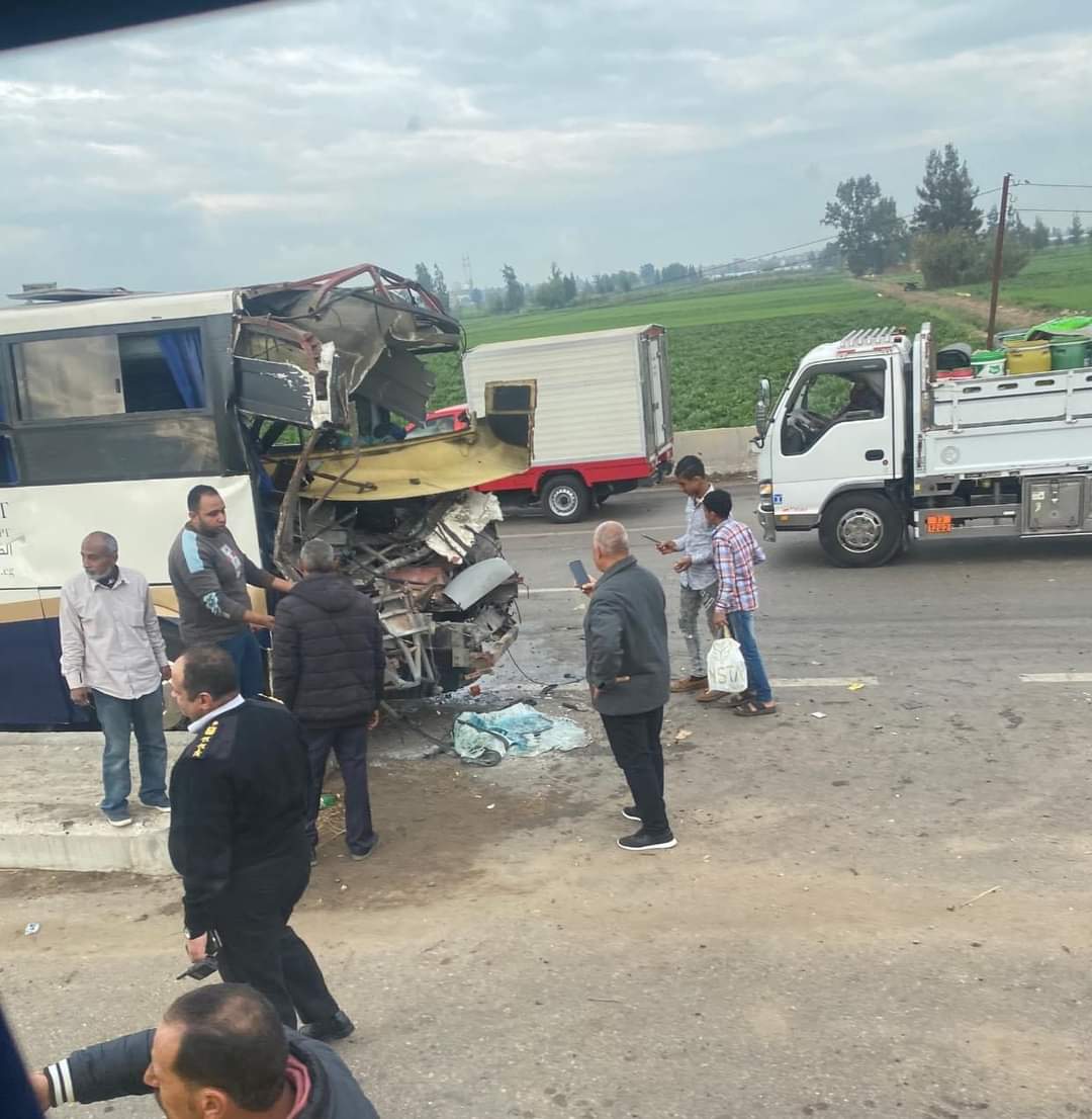 ارتفاع إصابات حادث تصادم أتوبيس بسيارة نقل على طريق جمصة - المنصورة لـ17 شخصا