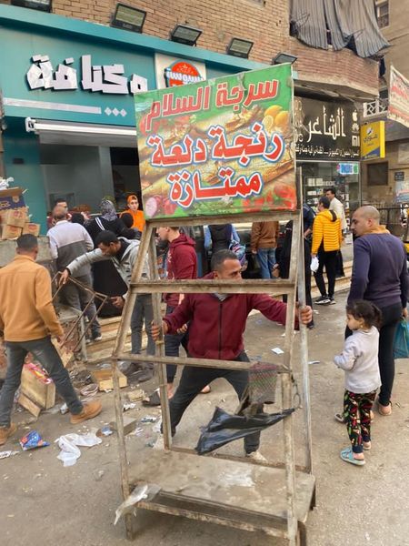 رفع 570 حالة اشغال وحملات لرفع التعديات على الطريق العام بالمنيب والبحر الأعظم