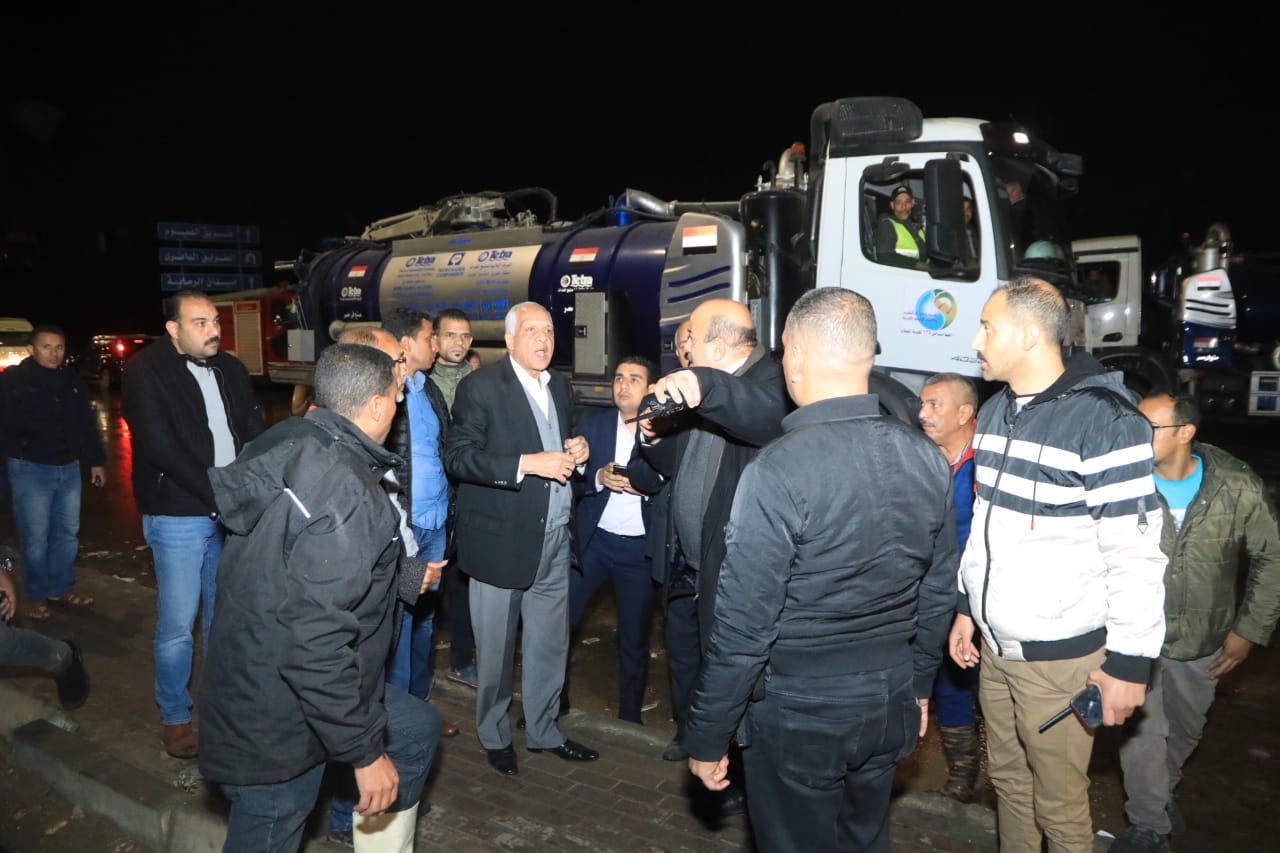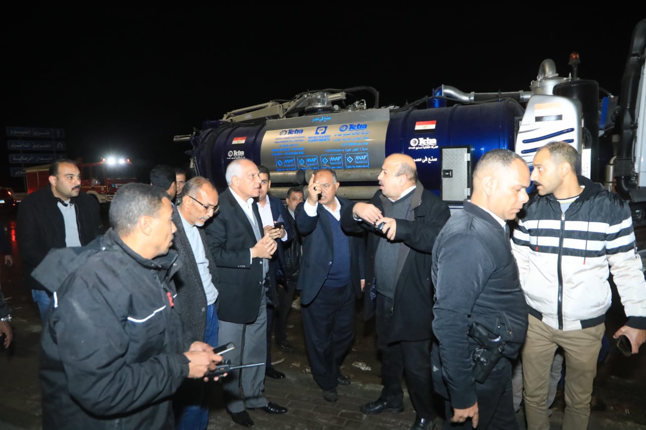 محافظ الجيزة يقود عمليات شفط المياه بطريق الواحات