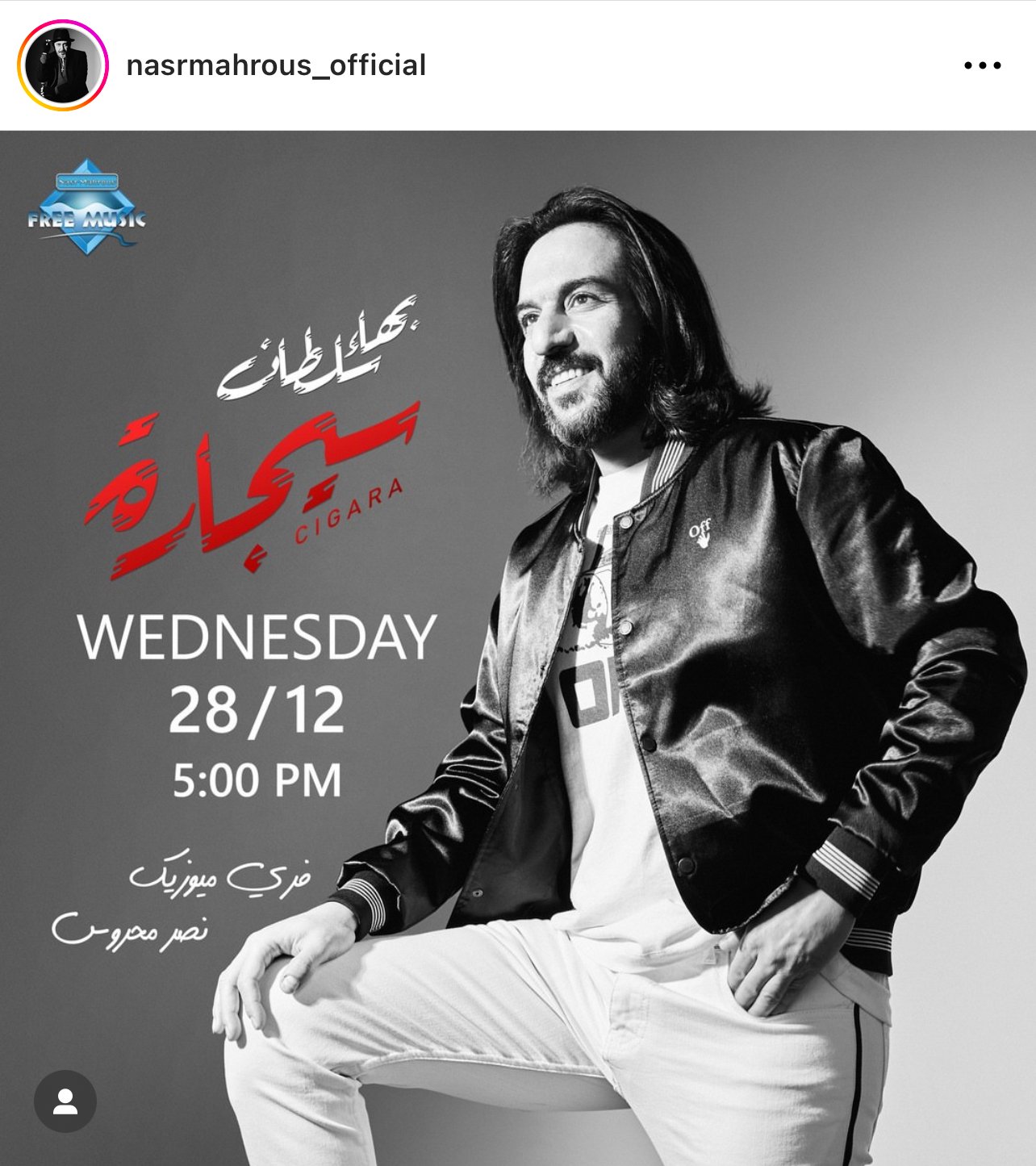 ونشر نصر محروس، عبر صفحته على موقع تبادل الصور والفيديوهات "إنستجرام" البوستر دعائي للأغنية "سيجارة" من المقرر طرحها يوم يوم 28 ديسمبر الأربعاء المقبل.