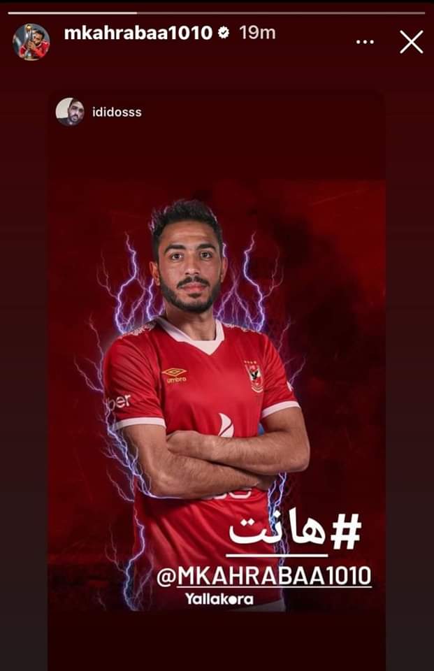 ونشر "كهربا" تعليق له علي حسابه الرسمي لموقع التواصل الاجتماعي "انستجرام" عبر خاصيه ستوري، قائلاً "هانت".