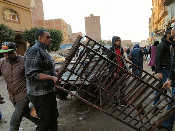 عدد 80 حاله اشغال للمقاهي والمحال التجارية والباعة الجائلين شملت كرسي متنوع وشيش واستاندات معروضات وإشغالات تُحدث إشغالاً بالطريق العام.