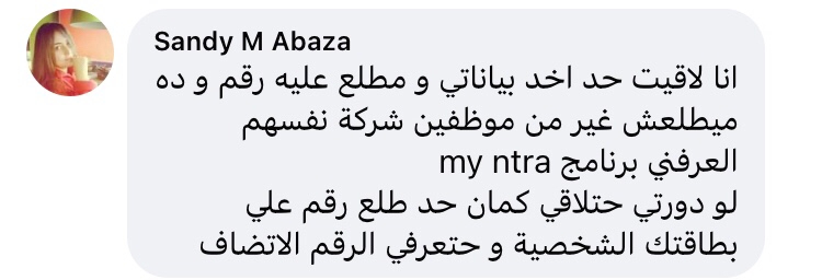 وتابعت ، "حتى لو بلغ بالرقم القومي بتاعي ازاي خطوة زي دي تحصل برا الفرع وصاحب الرقم القومي يبقى واقف قدامهم دا طبيعي يا جماعة ؟انا طلبت اسمع المكالمة عشان اعرف مين عمل كدا وهتخذ اجراء قانوني لان دا يعتبر تسريب لبيانات العملاء".