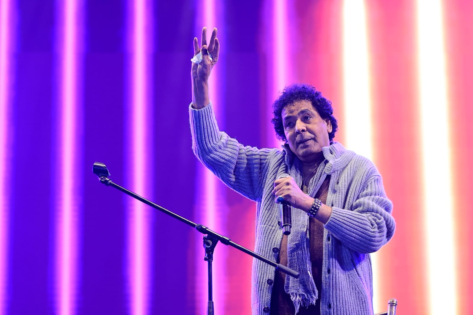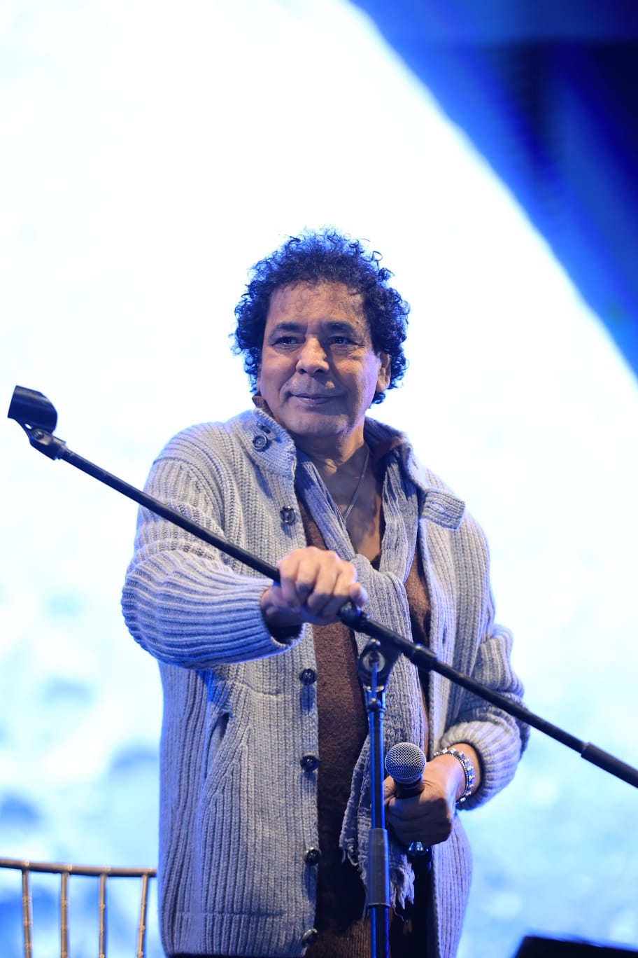 وأفتتح الكينج محمد منير الحفل بأغنية" ياعروسة النيل" وسط عاصفة من هتافات الإعجاب والترحيب بعدها حرص على توجيه كلمة شكر للقائمين على الحفل واصدقائه.