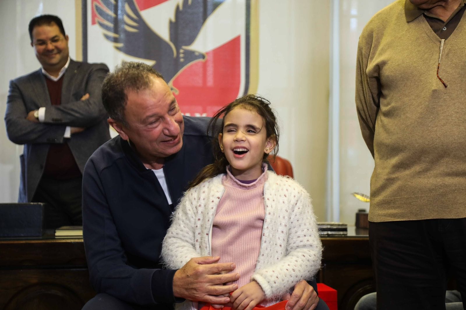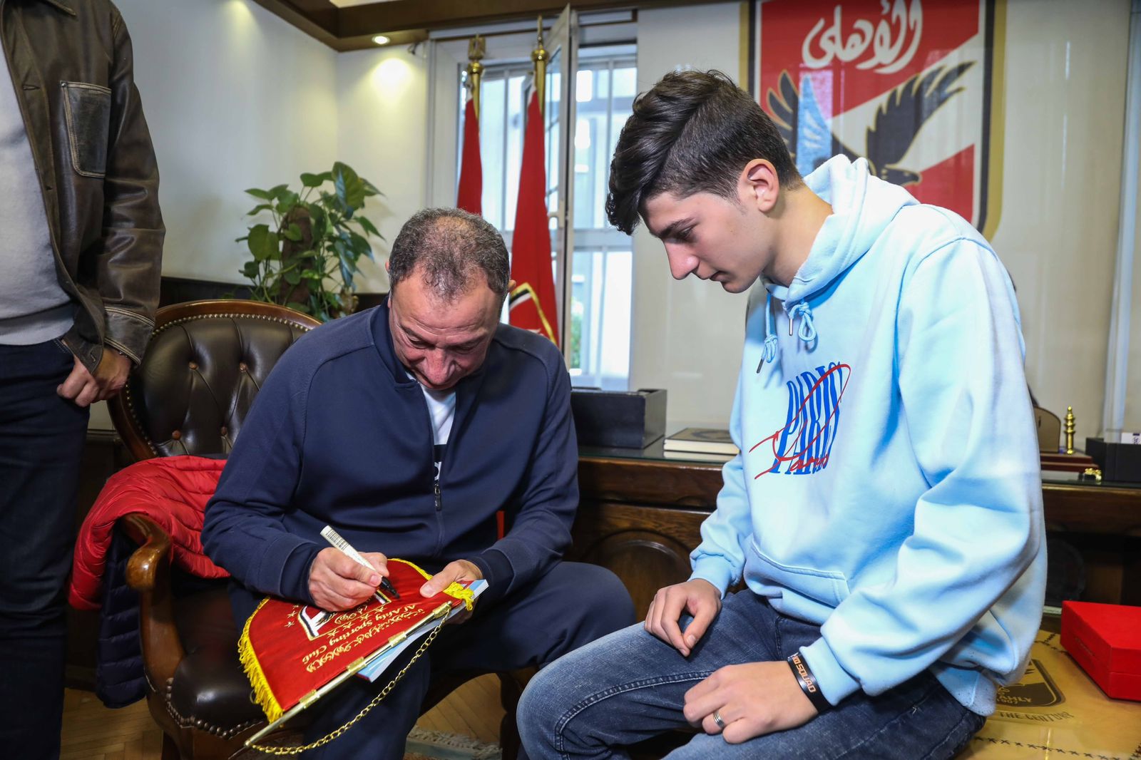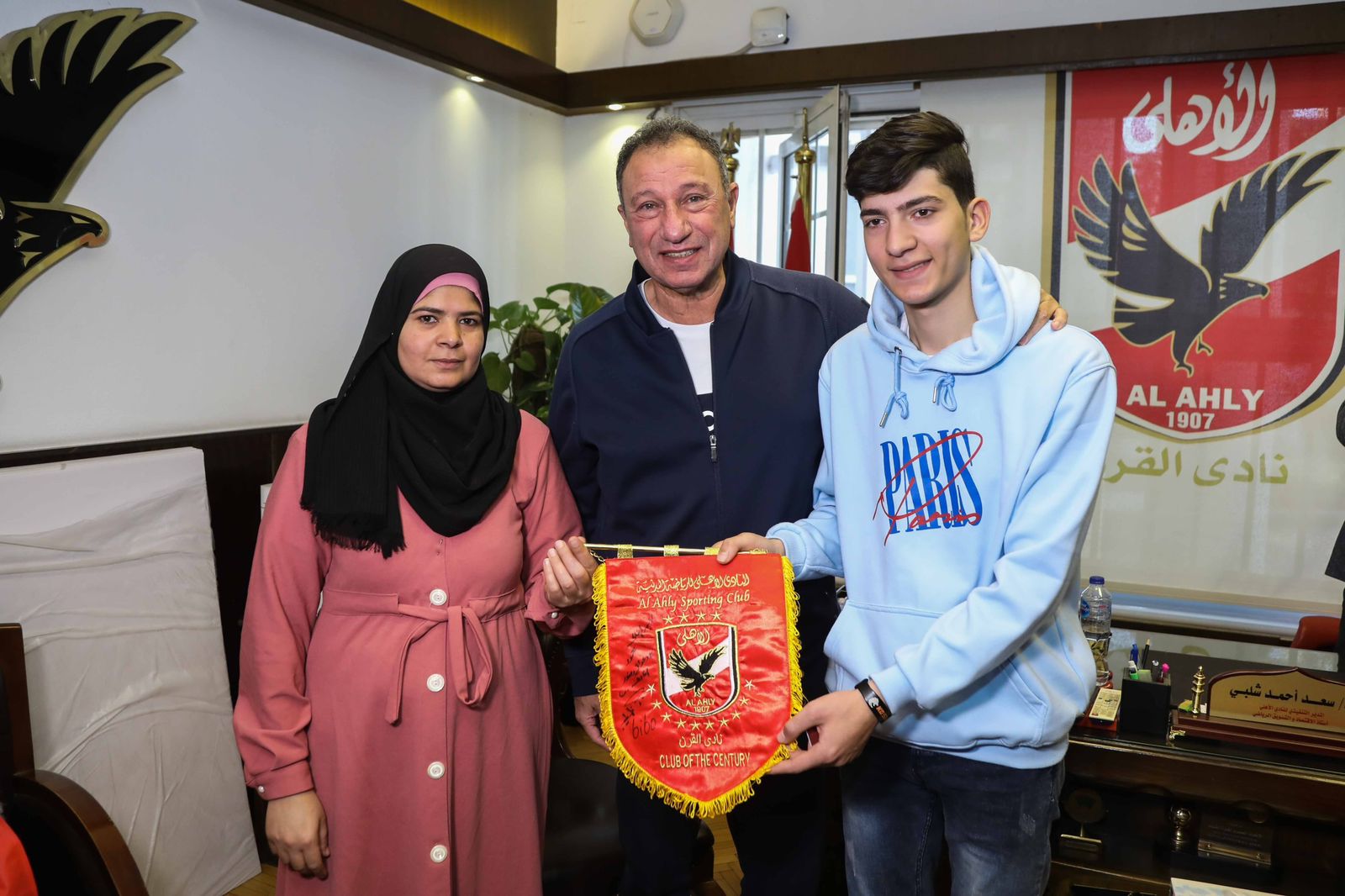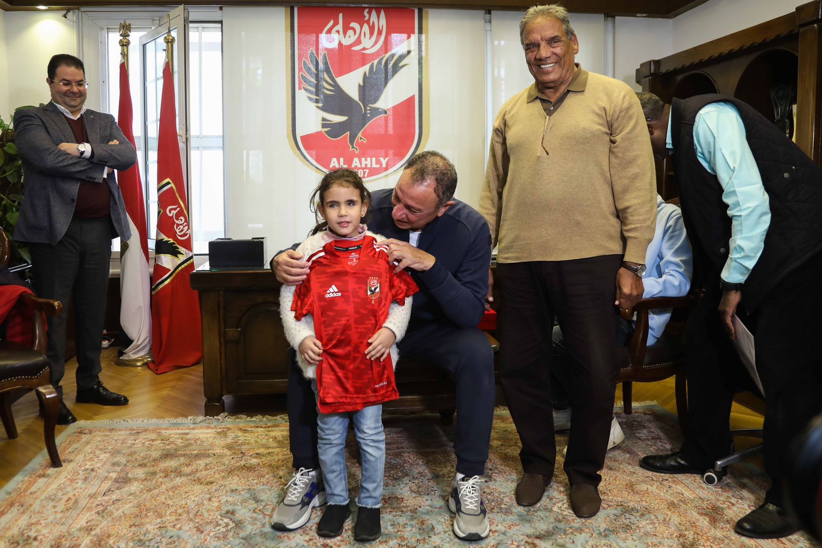 الخطيب يستقبل بطل ذوي الهمم "محمود أحمد" والطفلة "تاليا" في الأهلي (صور)