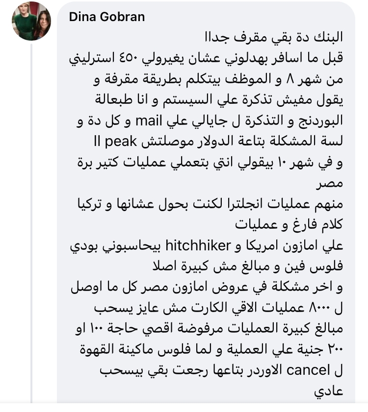 لو مجاليش اي رد انا هعمل محضر سب وقذف وهبلغ في جهاز مباحث الاتصالات واخيرا بجد منصحش اي حد يتعامل مع CIB ومش تجربة واحده ولا انا اول واحد وتقدروا تشوفوا كم الشكاوي اعملوا بحث بس ب اسم البنك وهتشوفوا بنفسكوا رقم تليفونك ورقم بطاقتك ورقم حسابك في البنك وعنوان بيتك ورقم تليفون بيتك كل التفاصيل دي البنك مبيحافظش عليها ويخلي ناس تانيه مالهاش علاقة بالبنك تتصل بيك ومعاها بياناتك وده الي بيخلي ناس تعرف تنصب لان البيانات بتاعت العملاء بقت مع اي حد عادي".