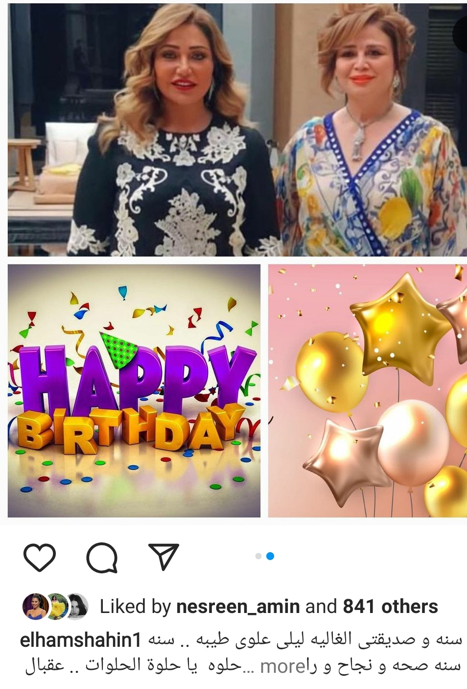 ونشرت إلهام شاهين صورة برفقة ليلي علوي، وعلقت عليها قائلة: "كل سنة وصديقتى الغالية ليلى علوي طيبة.. سنة حلوة يا حلوة الحلوات.. عقبال 100 سنة صحة ونجاح وراحة بال".