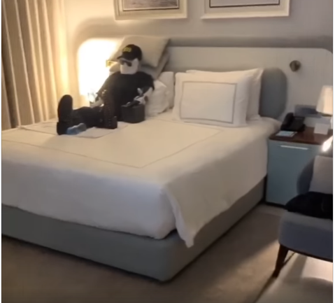 وعلق الفنان محمد رمضان على الفيديو قائلاً "شكراً لخدمة الغرف ، أنها