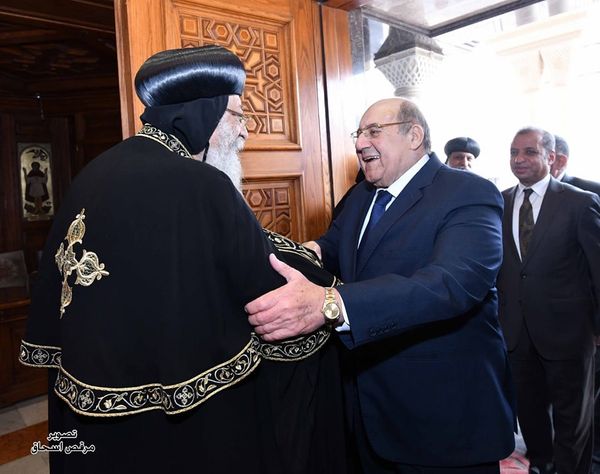 وكان فى استقباله قداسة البابا تواضروس الثاني و كبار رجال الكنيسة، حيث وجه الشكر للمستشار رئيس المجلس و الوفد المرافق له