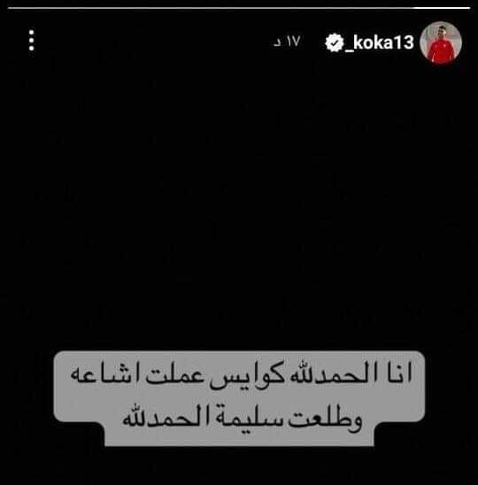 وعقب ذهابه إلى مستشفى بساعات قليلة نشر أحمد نبيل كوكا عبر حسابه على مواقع التواصل الإجتماعي " إنستجرام":" أنا الحمدلله كويس، عملت إشاعة وطلعت سليمة"