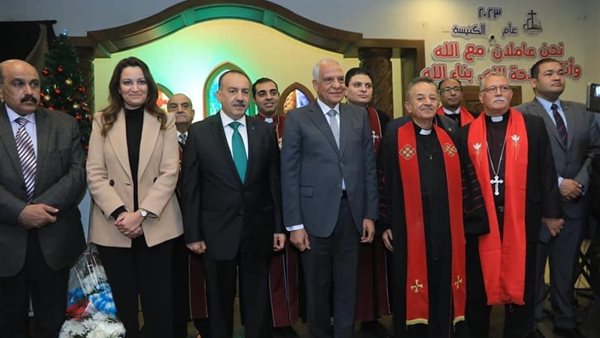 محافظ الجيزة يزور مقر الكنيسة الإنجيلية للتهنئة بعيد الميلاد المجيد