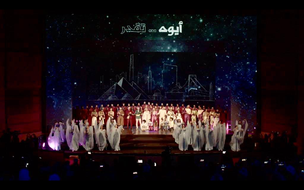 وضم العرض الذي انطلق على مداري يومي 7 و8 يناير الجاري، وقام بتأليفه الدكتور مدحت العدل وإخراج بتول عرفة، مجموعة من نجوم الفن وهم يسرا، كارول سماحة، أكرم حسني، حنان مطاوع، محمد فراج، أسماء أبو اليزيد، محمد الشرنوبي، أحمد الرافعي، فريق بلاك تيما، وكورال الشرق.