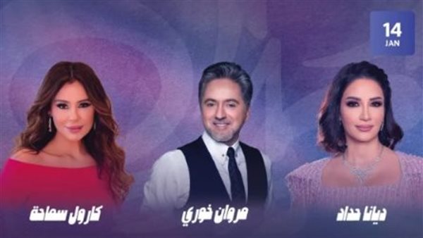 يستعد كلا من الفنان اللبناني مروان خوري وكارول سماحة وديانا حداد، لحفلا غنائيا على مسرح أبو بكر سالم لإحياء حفل جديد، يوم السبت الموافق 14 يناير الجاري.