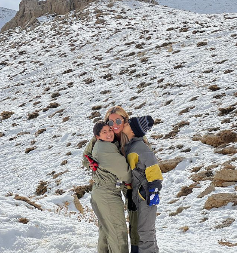 ابنة غادة عبد الرازق تستمع بالثلوج برفقة أطفالها