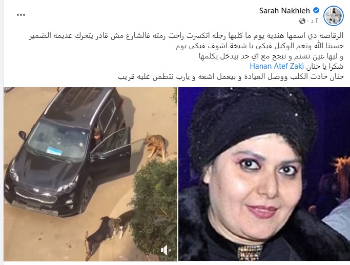 وتابعت فى بث مباشر على صفحتها " فى واحدة بشخة مسلطاكم فا يالا يا حبيبتي إنتي وهي .. أنا سبته علشان أطلع استحمي واتصلت بالرفق بالحيوان".
