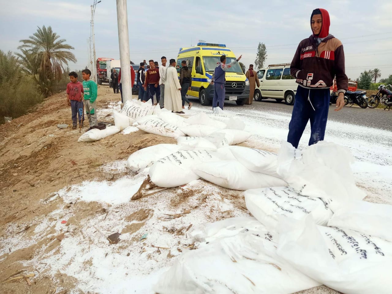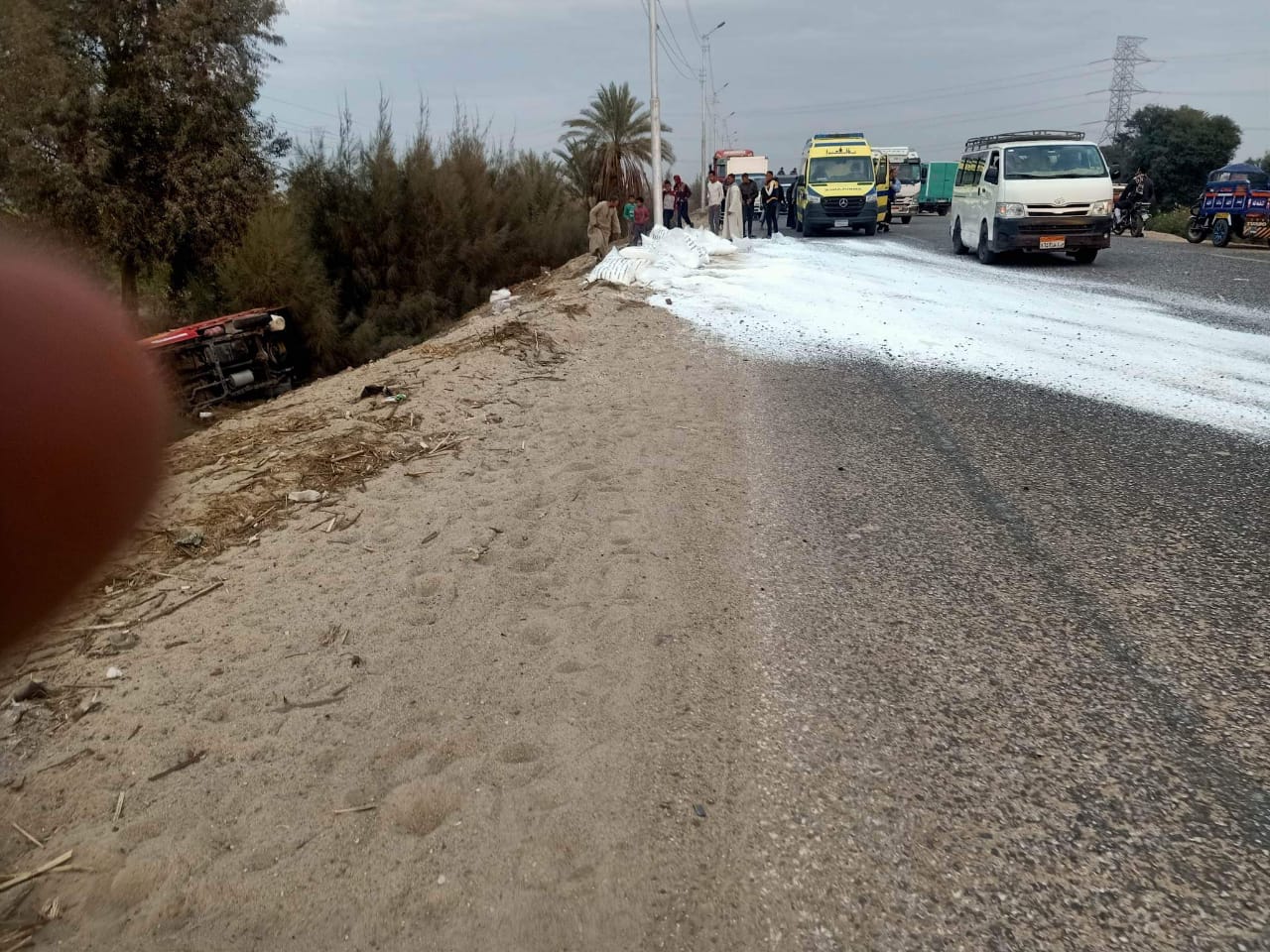 وانتقلت قوة أمنية إلى مكان الواقعة وتبين وقوع حادث انقلاب سيارة تريلا على الطريق العام بالقرب من قرية القناوية وتسبب ذلك في إصابة السائق واتلاف العديد من الأسمدة، تم إزالة العوائق وفتح الطريق مرة أخرى، تم نقل المصاب إلى المستشفى لتلقي العلاج والرعاية الطبية اللازمة فيما تحرر محضر بالحادثة وأخطرت النيابة العامة لتولي التحقيقات.